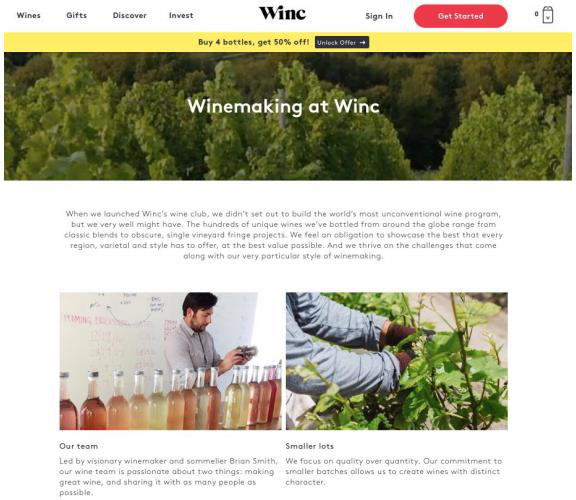 专业出精品。Winc不仅吸引了大量的葡萄酒新手,同样深受葡萄酒老手的喜爱。Winc网站的酿酒页面里详细的展示了如何小批量生产葡萄酒,如何使用来自全世界的高品质的葡萄。
