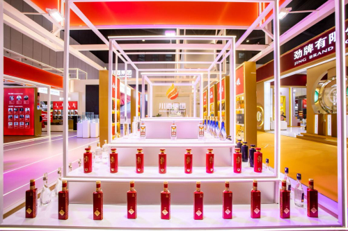酒香弥漫的四月,来自全国各地的酒企、经销商汇聚成都。西博城场内展14-15接连馆,川酒集团主场迎客,展位占地面积252平方米,以热情的“川酒红”为基调,金属框架与灯带交织彰显出不同于传统酒企的新锐时尚。来往商客络绎不绝走进其中参观体验,洽谈交流。
