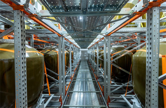 集约化的设计理念在酒库的建设上也表现得淋漓尽致。走进国台酒庄的智能化数字酒库,每一栋分为5层,每层又设置为两层钢架,底下一层为吨坛,上面一层为千斤坛,这里存放着国台各年份的基酒。据悉,国台酒庄规划有6栋酒库,每栋储酒1万吨。