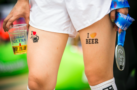 赛事接近尾声之际,所有参赛者都在冲过终点之后获得了一块精美的奖牌作为留念。沉浸在运动带来的幸福感中的参赛者们,拭去额头汗水之余,纷纷走进了布置精美的Hoegaarden和Michelob Ultra啤酒展台,享受冰爽啤酒滑过喉咙带来的畅快。Michelob Ultra啤酒专为热爱运动的人而酿造,低卡路里、低碳水化合物、低醇和零脂肪是其永远镌刻在身的健康标签;而纯正的比利时小麦啤酒Hoegaarden则因其独特的酿造配方及严苛的二次发酵工艺,成为了白啤酒复苏的领军人。互动体验区内,不少跑友与专业人士上演着一场场有趣的健身挑战;而专业的DJ现场打碟,令气氛不断高涨,微醺的欢声笑语不断。