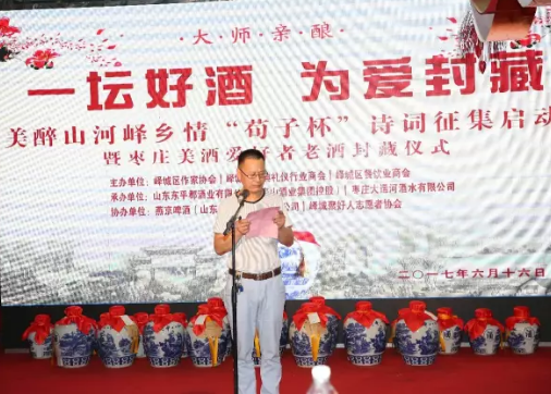峄城区作家协会主席邵明思、东平郡酒业有限公司集团董事长张彬、枣庄大运河酒水有限公司董事长于芳亮,以及峄城社会各界人士共同参加了此次活动,借诗词之机,聚爱酒之士,品美酒之味,封一坛老酒。