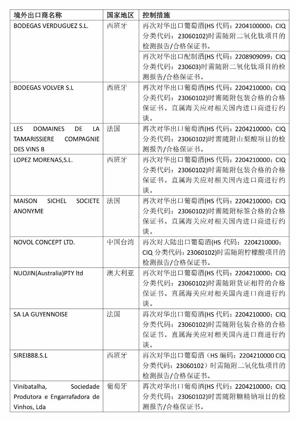 日前,海关总署发布了一系列进口产品的风险预警,包括多家海外葡萄酒企业。未来,当这些企业再次向中国出口葡萄酒时,需向海关增加提供指定单证,以及相关检测报告。