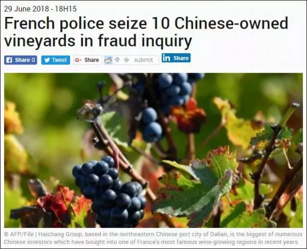 近日,有媒体报道中国大连海昌集团在波尔多收购的10家酒庄被法国政府调查。据法国电视2台透露:法国警方查处了十几家酒庄,因为酒庄所有者任其荒废,引发同行不满,法国警方调查结果显示,这是一种挪用中国政府公款的行为,但酒庄所有者目前已经联系不上。