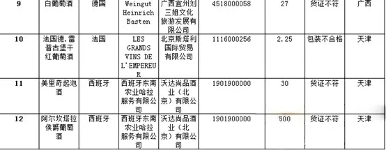 综合海关总署发布的2018前6个月相关未准入境的食品化妆品信息,今年上半年,共有12批次不合格进口葡萄酒未准入境,重量总计11098千克。海关总署表示,这些未准入境的不合格进口葡萄酒均已在相关口岸退运或销毁。