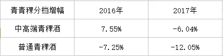 青青稞2017年的业绩,中高端占比达68.71%,数字虽然可观,但却是从2015年的72%到2016年的70.37%,一路下滑而来的。而且,青青稞2017年的中高端营收也呈现出了-6.04%的负增长,形势不容乐观。
