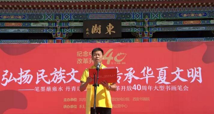 2018年9月3日,为纪念改革开放四十周年,讴歌改革开放四十年来我国所取得的伟大成就,歌颂党和人民的丰功伟绩。在凤翔县政协、陕西书画院宝鸡分院、西安书画院的号召下,为发扬和继承华夏民族的传统文化,华夏文明西凤酒品牌运营中心在凤翔县隆重举办“弘扬民族文化,传承华夏文明——笔墨蘸雍水,丹青颂盛世庆祝改革开放40周年书画笔会”活动。