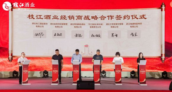 到了4月,枝江酒业开始陆续对外透露已经出现多个百万、200万、300万大单。而在此次活动中,枝江酒业与湖北金来供应链管理有限公司、湖北粤强樽品酒业有限公司、可口食品(湖北省)有限责任公司、湖北兰亭叙餐饮管理有限公司、武汉瑞通恒富商贸有限公司等五家大商签订合作协议,共同为消费者带去更高品质、更好风味、更具性价比的枝江好酒。