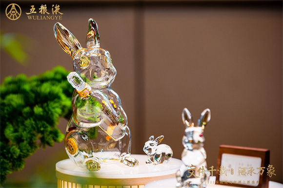 值得关注的是上新环节,五粮液通过“击缶迎新”的方式,揭开了兔年生肖纪念酒、五福熊猫、和美中国系列的神秘面纱。五粮液股份公司创新设计中心主任叶根军对产品的设计理念进行了分享。