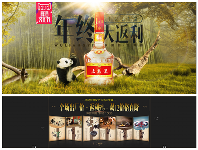 泸州老窖的双十二跟双十一相比,优惠幅度不减,且还有限时秒杀活动。12日当天0.9元秒杀窖龄小礼盒,9.9元秒杀双瓶泸小二,而且都是限量秒杀。还将永盛烧坊窖作为预售款,先付定金再抢。此次泸州老窖的“不止50%折扣 血拼到底”口号可谓是贯彻到底,在页面上推出的泸州原浆喜庆装、特曲、泸州老窖09版六年陈头曲等都打上了“不止5折”的标签,另外还推出了组合装、套装、爆款等。
