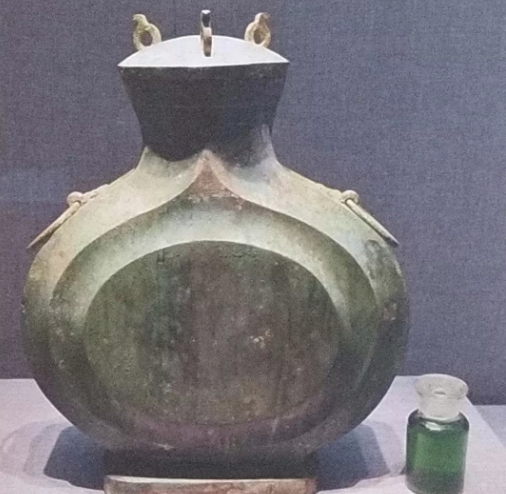 【战国绿酒】1974年河北省平山县中山国王大墓东库出土,这件扁铜壶中的酒呈浅翡翠绿色。距今2300年
