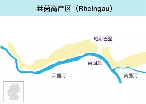 莱茵高位于莱茵河畔。虽然它的面积仅占整个德国葡萄酒产区很小的一部分,但在德国葡萄酒发展历史上却有很多重要的创举,拥有大量蜚声世界的酿酒商,如约翰山酒庄(Schloss Johannisberg)。1775年,正是莱茵高的约翰山修道院在各种机缘巧合下,首次发明了晚收型葡萄酒,并发现了贵腐菌的存在,从此开启了利用特选葡萄酿制高品质葡萄酒的历程。