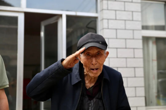 邬平 92岁 1948年1月入伍,参加了解放战争和抗美援朝,1955年复员。(老兵的双手颤抖,但军礼依旧标准,目光坚定)
