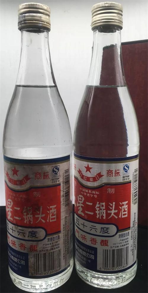 下图是一真一假两瓶红星二锅头,略显沧桑的是08年的,崭新的是10年的,大家猜测一下哪瓶是真的,哪瓶是假的呢?