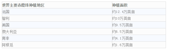 法国的赤霞珠种植面积超过12万英亩,是最重要的赤霞珠生产国。而波尔多(Bordeaux)则是法国最重要的赤霞珠产区,其赤霞珠种植面积占全法国的60%以上。