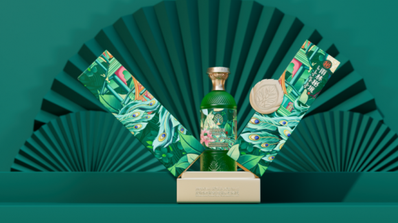 自古以来,生活在西双版纳的各族人民在这片雨林秘境中得到了传承和发展,例如,傣族能歌善舞,久负盛名的孔雀舞,通过优雅舞姿,兼具韧性与轻盈,以肢体为语言描绘出孔雀活泼伶俐、高贵典雅的华美意境。雨林秘境酒以此为灵感,将孔雀、菩提叶、傣楼、傣锦纹样等特色元素相融合,打造别具一格的包装标识,展现傣族文化的传统美学特色。