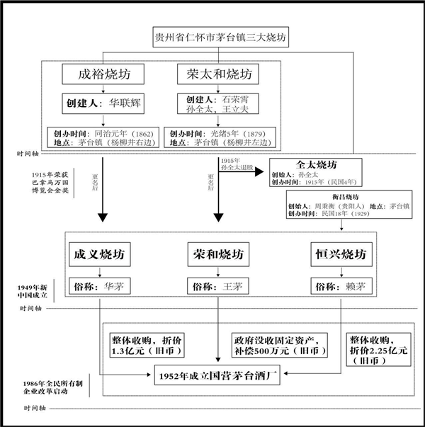 1951年,成义烧坊被仁怀县人民政府购买并公有化,更名为"贵州省专卖事业公司仁怀茅台酒厂",成为贵州茅台酒厂的前身之一。