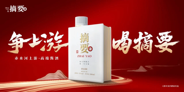2024年,华与华借鉴郎酒“赤水河左岸”庄园酱酒的模式,为金沙摘要梳理出“争上游,喝摘要”的品牌宣传口号。