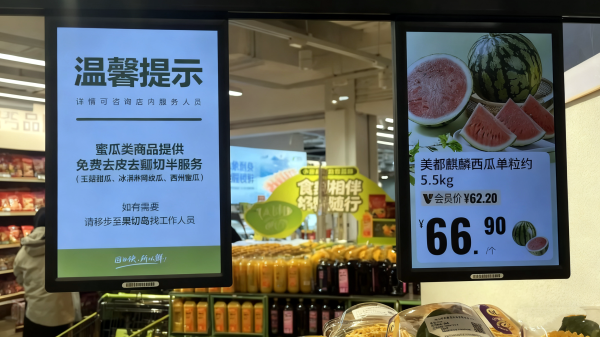 在门店布局与陈列上,小象超市借鉴了物美“胖改店”的思路,强调整洁、明亮的标准化预包装,并在服务细节上大做文章。店内随处可见“选购小贴士”,并提供牛排代煎、蜜瓜去皮去瓤等免费加工服务。这与盒马早期推广的海鲜现场加工服务逻辑相似,旨在提升线下体验的附加值。