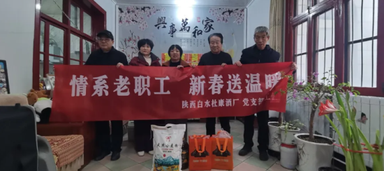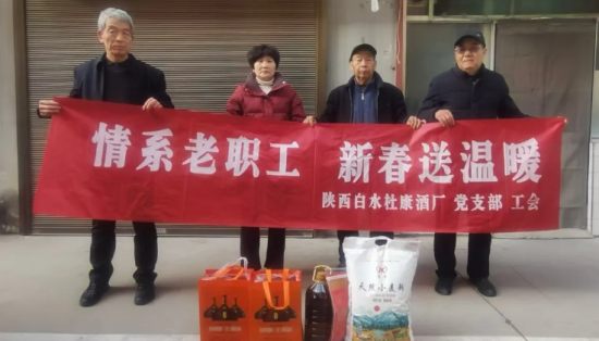 1月27日-28日,在新春佳节即将来临之际,陕西白水杜康酒厂党支部、工会联合组织开展“情系老职工 新春送温暖”春节走访慰问活动,为公司离退休老职工送去企业的深切关怀与诚挚的新春祝福。