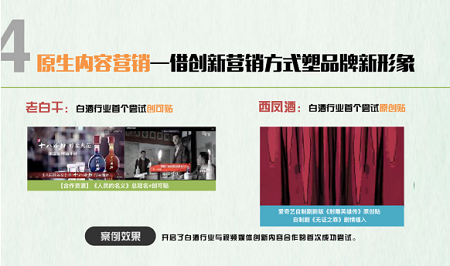 基于优质娱乐内容,将广告变成内容的一部分,提升用户体验、广告效果和品牌好感度。目前,爱奇艺推出的创可贴、原创贴等广告产品正在帮助广告主实现广告即内容的目标。此前,老白干在《人民的名义》中试水创可贴模式,让广告与剧情紧密关联。西凤酒则是白酒行业中首个尝试原创贴的品牌,其在爱奇艺自制剧新版《射雕英雄传》中定制3支原创贴创意中插,通过人物关系、道具植入、产品露出等方式突出品牌价值,诠释产品卖点。
