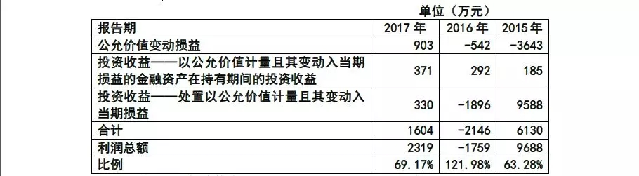 年报提供的数据显示,2015年到2017年,兰州黄河与证券投资相关的损益合计数分别为6130万、-2146万和1604万元,占对应期间公司利润总额比例分别为