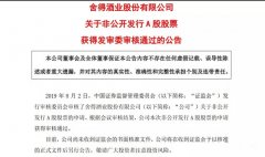 8月3日,舍得酒业(600702.SH)发布了《关于非公开发行A股股票获得发审委审核通过的公告》,公告显示,2019年8月2日,证监会发行审核委员会审核了舍得酒业关于非公开发行A股股票的申请。根据会议审核结果,舍得酒业本次非公开发行A股股票的申请获得审核通过。...