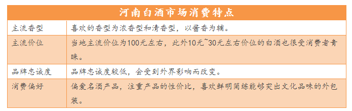 河南白酒市场是一个完全开放的市场,几乎集中了川、黔、豫、鄂、皖、苏等主要品牌。只要进入市场努力精心运作,就能分食一杯羹。因此,河南的市场现状是,外来品脾瓜分一半以上的市场份额,当地品牌只占据了不到一半的市场份额,半壁江山拱手让给了外来品牌。其实这也能看出当地并没有特别强势的品牌,因此这也就给外来品牌提供了良好的发展机会。外来品牌要想发展的好,就必须要对当地消费者的喜好有所了解。据调查我们发现,河南当地消费者拥有以下特点: