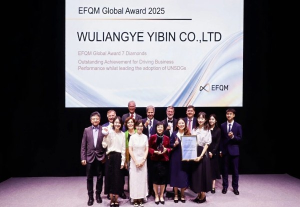 10月15日-16日,2025年EFQM可持续绩效大会暨2025全球奖颁奖典礼在西班牙举行。会上,五粮液以中国企业创奖以来最高分荣获EFQM全球奖(七钻),并获“联合国可持续发展目标践行与企业绩效卓越奖”单项奖,标志着其基于全球卓越管理体系构建的国际化战略进入全新阶段,品牌的国际影响力更上一层楼。