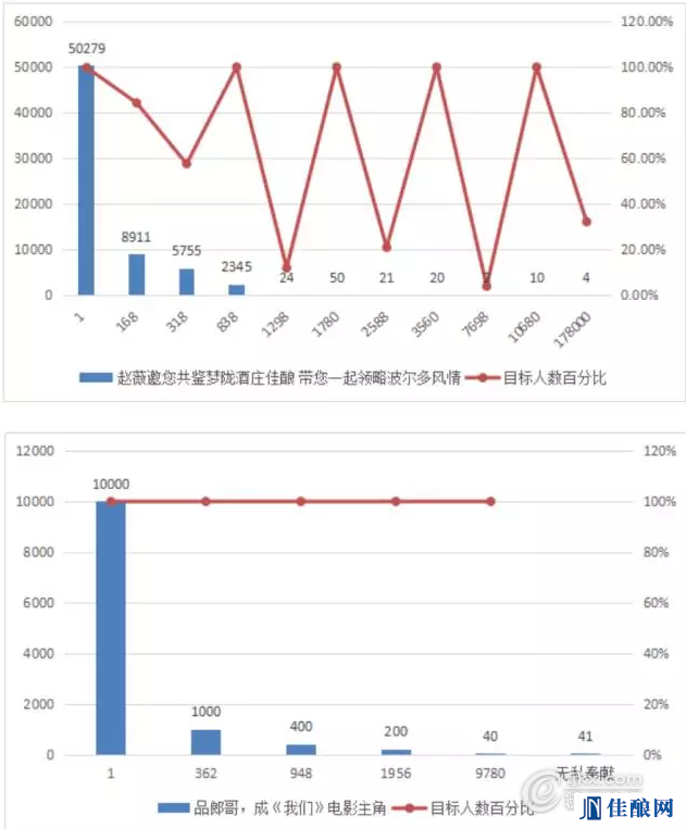1、 C2M酒类众筹目的不是实现大规模销售,主要是在核心圈层中培育种子客户和核心消费者。以排名第一的“赵薇邀您共鉴梦陇酒庄佳酿 带您一起领略波尔多风情”项目为例,众筹目标仅为10万元。“品郎哥,成《我们》电影主角”众筹目标也仅仅设定在50万元。